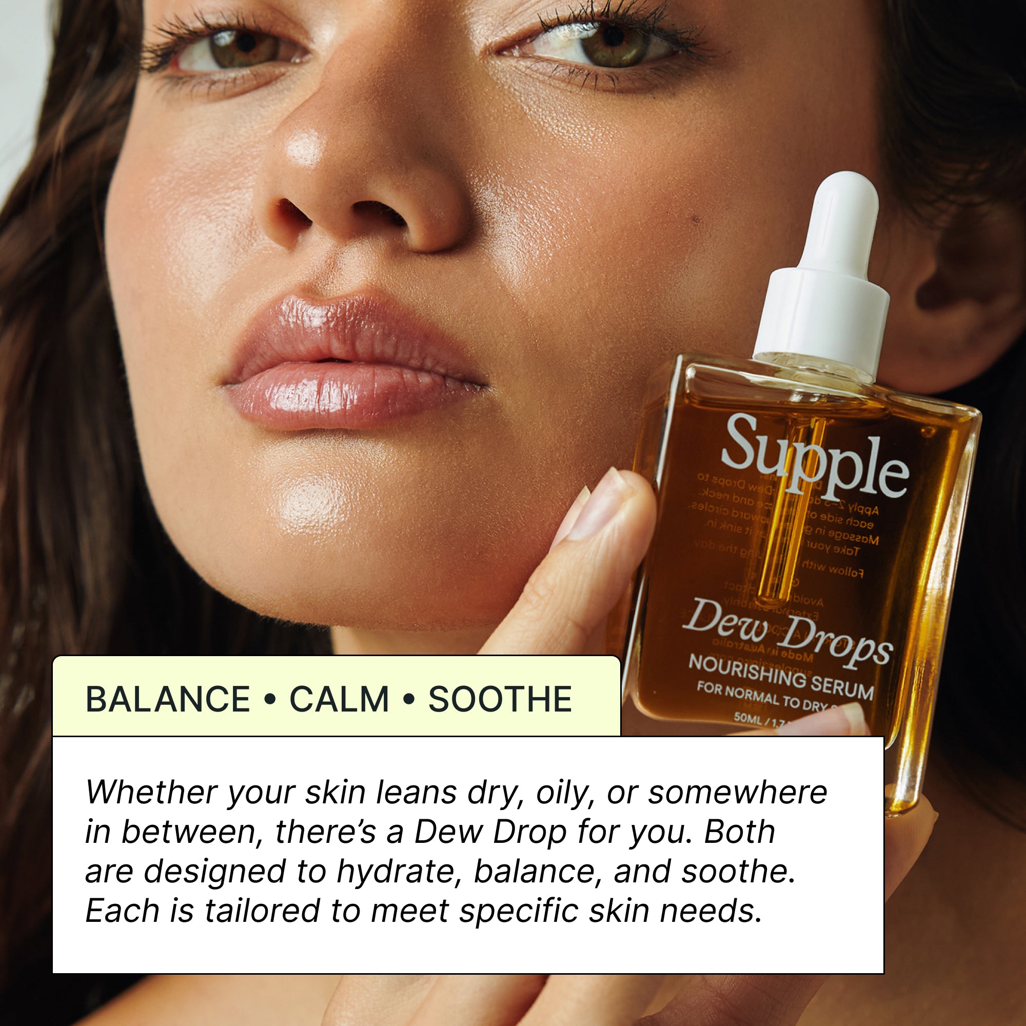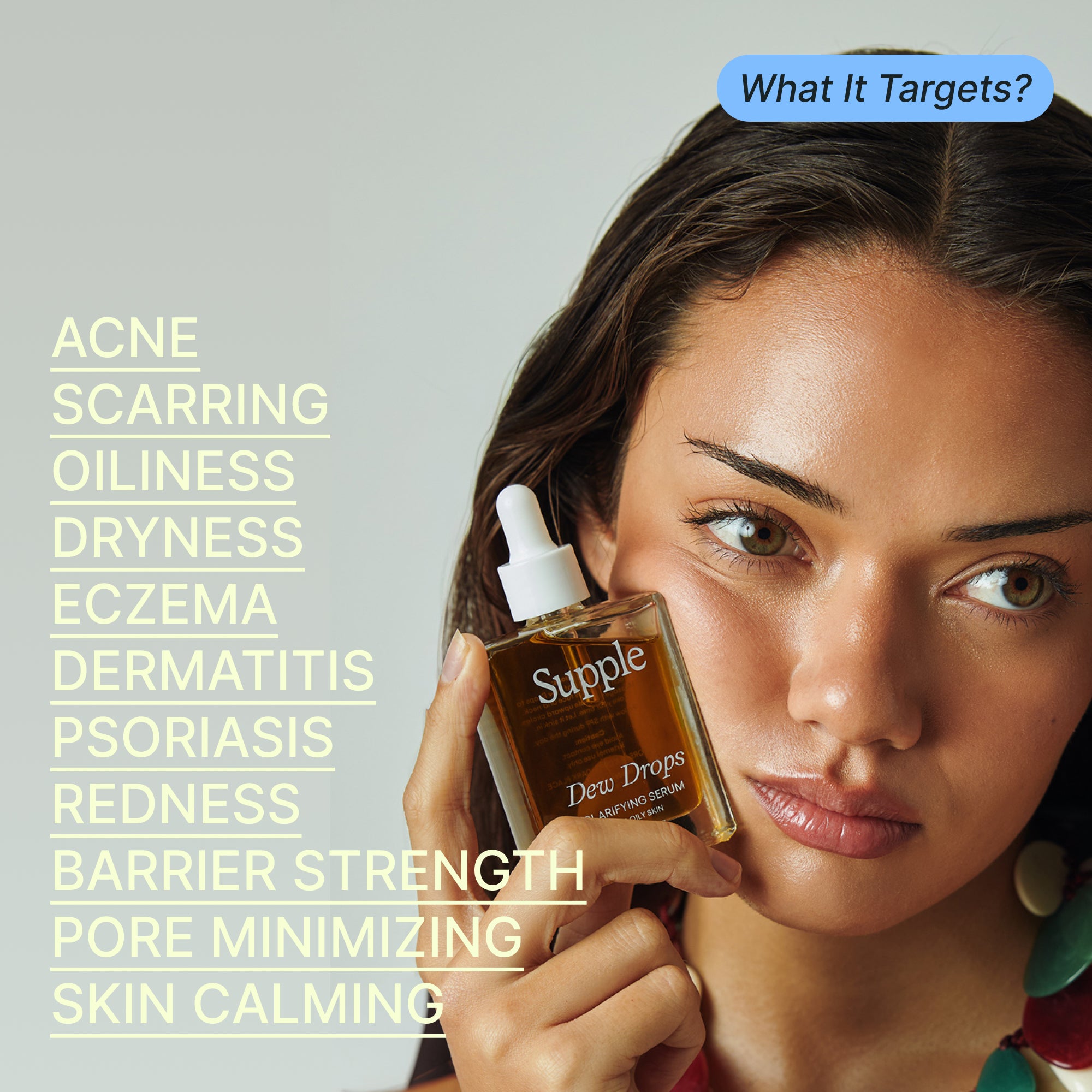 Think of Dew Drops as your skin's daily reset button. One product that clears, calms, and protects, so you can wake up with skin that feels as good as it looks.