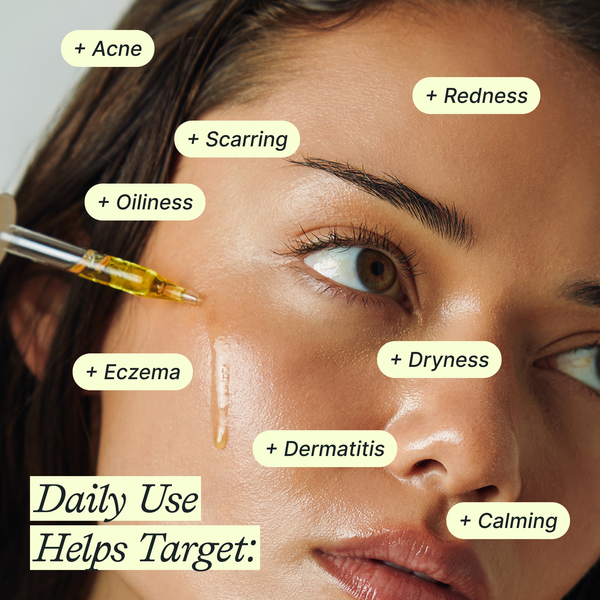 Dew Drops isn't your typical acne treatment. We created this lightweight hemp oil specifically for skin that's tired of being stripped, dried out, and irritated by harsh products that promise the world but leave you worse off.